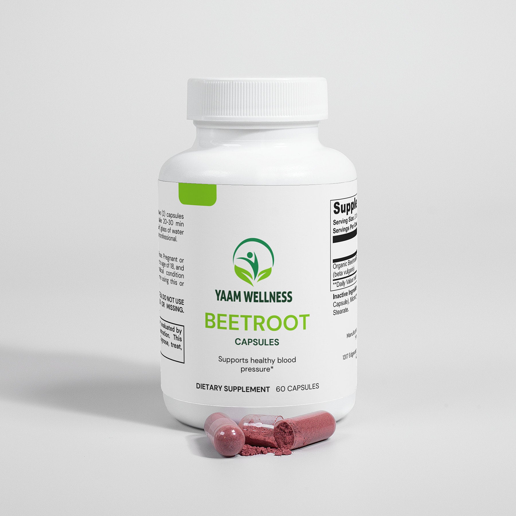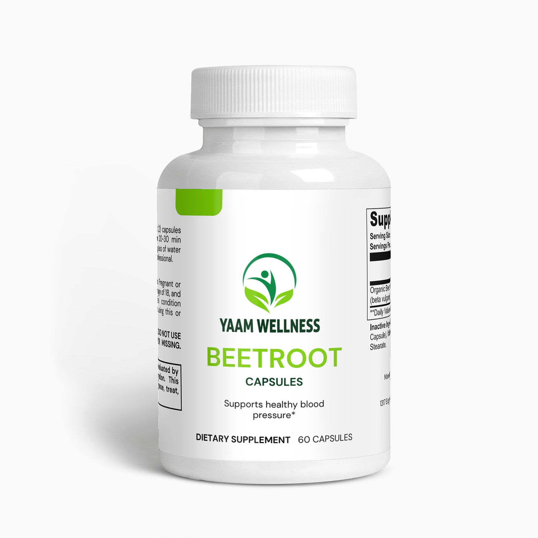 Ingredients: Organic Beetroot Powder (beta vulgaris), Cellulose (Vegetable Capsule), Microcrystalline Cellulose, Magnesium Stearate.